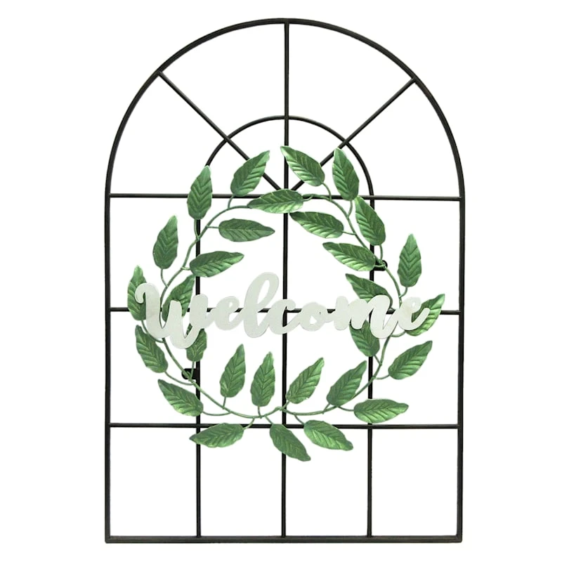 Add a pinch of fun to your patio or garden with our 29in. metal “Welcome” window wall decor. Created with love, this decorative metal wall plaque features a black, green and white windowpane and wreath motif. Everyone will enjoy the wonderful welcome. Made of painted metal, this wall art is designed to greet guests all season long.