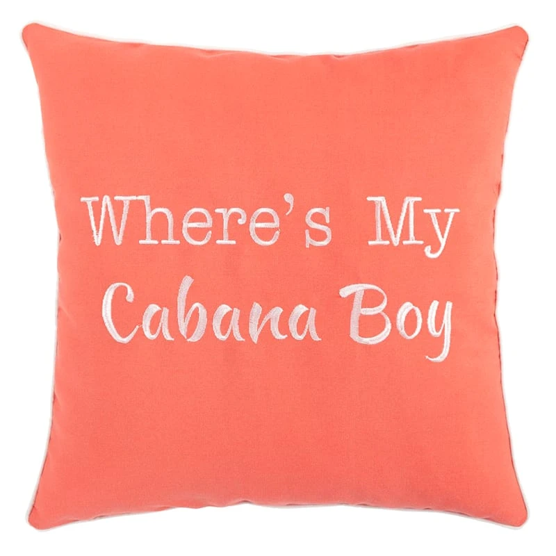 Where’s My Cabana Boy Cayenne Pink Outdoor Throw Pillow, 18"