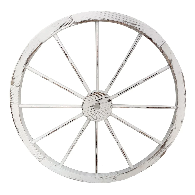 Whitewashed Wooden Wagon Wheel Outdoor Wall Decor, 24"