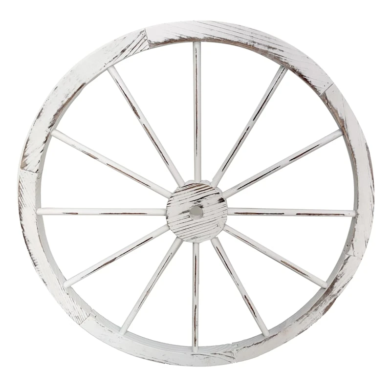 Whitewashed Wooden Wagon Wheel Outdoor Wall Decor, 32"