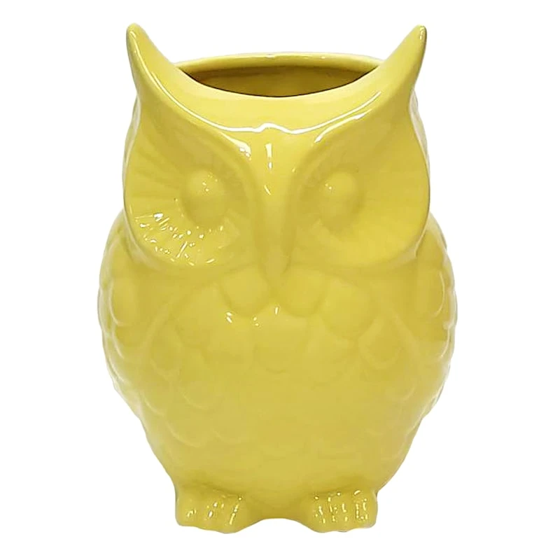 Yellow Stoneware Owl Pot, 6.5"